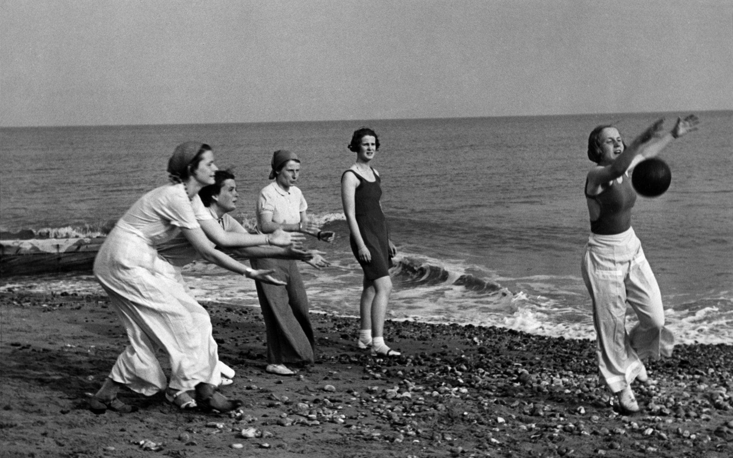 • תלמידות קולג' אוגוסטה ויקטוריה משחקות על חוף הים ב-1935 (צילום: באדיבות מוזיאון בקסהיל)