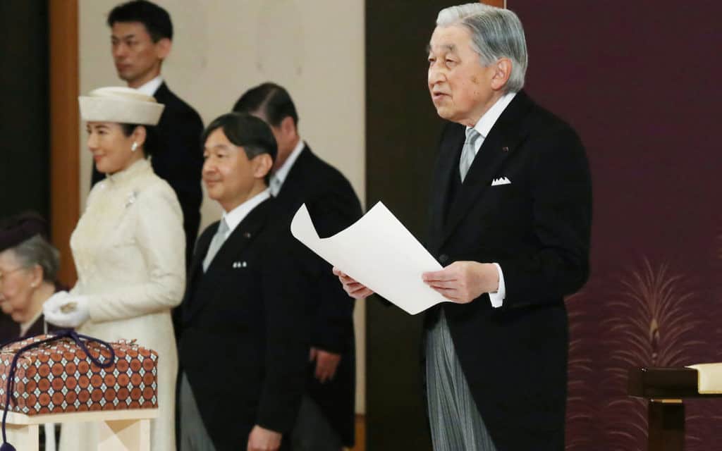 קיסר יפן אקיהיטו, בן 85, הודיע כי הוא פורש באופן רשמי מתפקידו ומעביר את הכתר לבנו, ארוהיטו בן ה-59. המדובר בקיסר הראשון ב-200 השנים האחרונות שמוותר על הקיסרות.