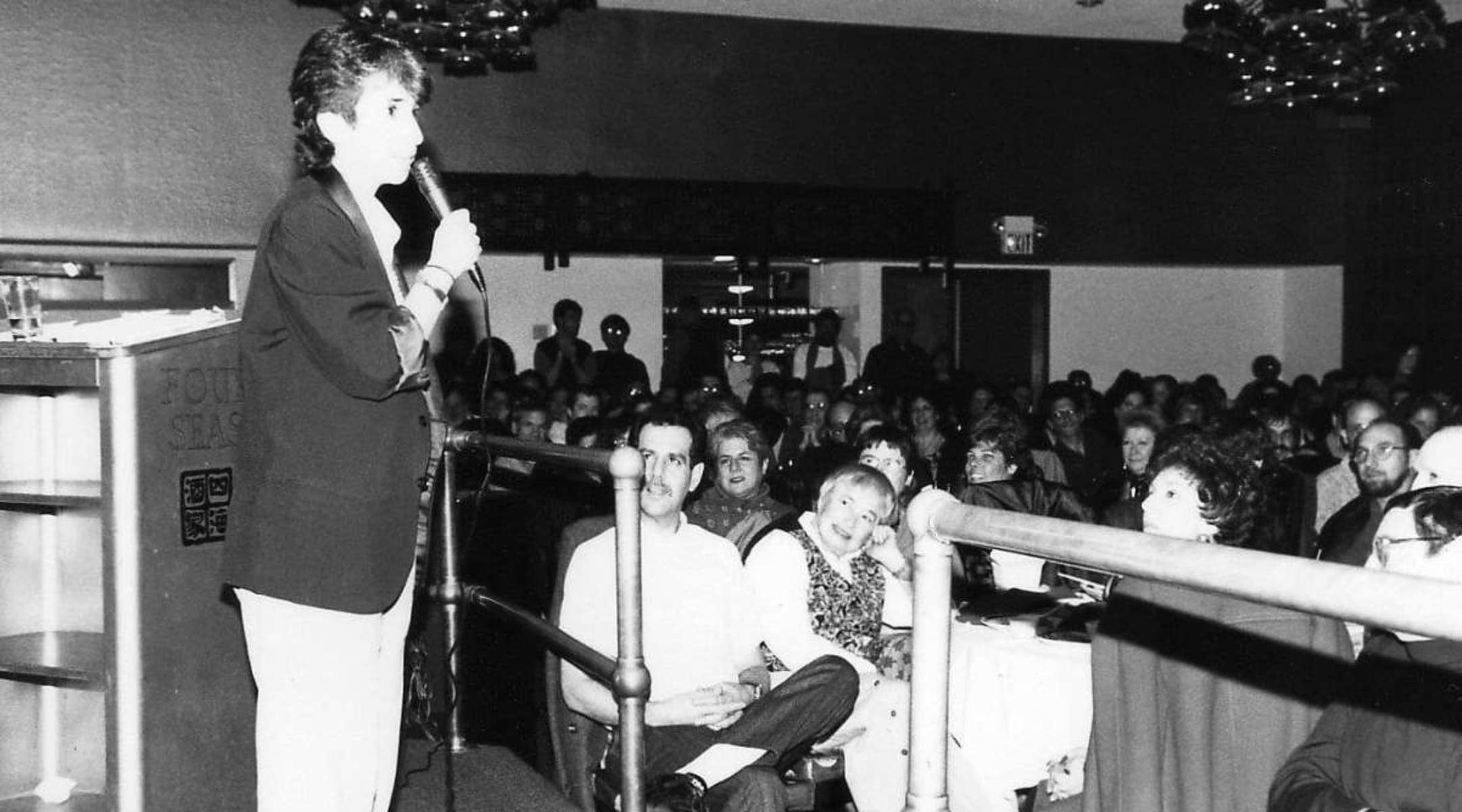 ליסה גדולדיג על הבמה במופע הראשון אי פעם של "קונג פאו - קומדיה כשרה" בסן פרנסיסקו, 1993 (צילום: באדיבות המצולמת)