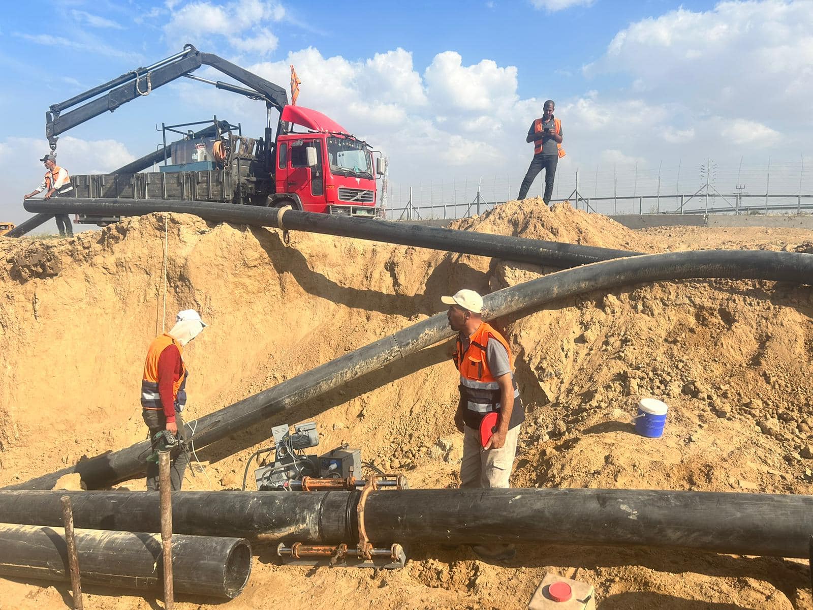 תיקון קו בני סוהילה בצד הישראלי על ידי עובדי מקורות תחת אש (וידיאו: "מקורות"‎