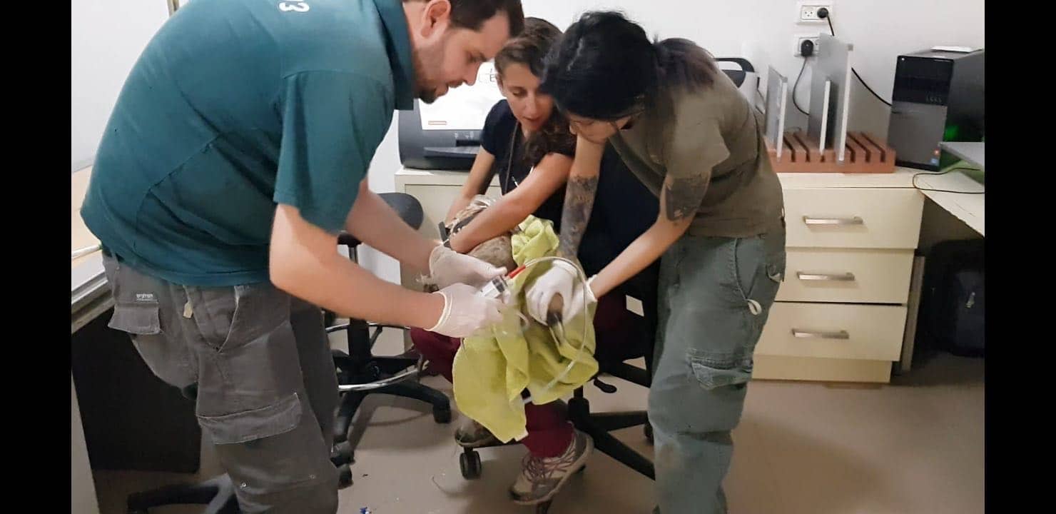 כעת מבצעים לנשר בדיקות כלליות ומעניקים לו טיפול רפואי ראשוני שכולל גם שטיפת קיבה כדי להוציא את שאריות המזון המורעל שאכל.