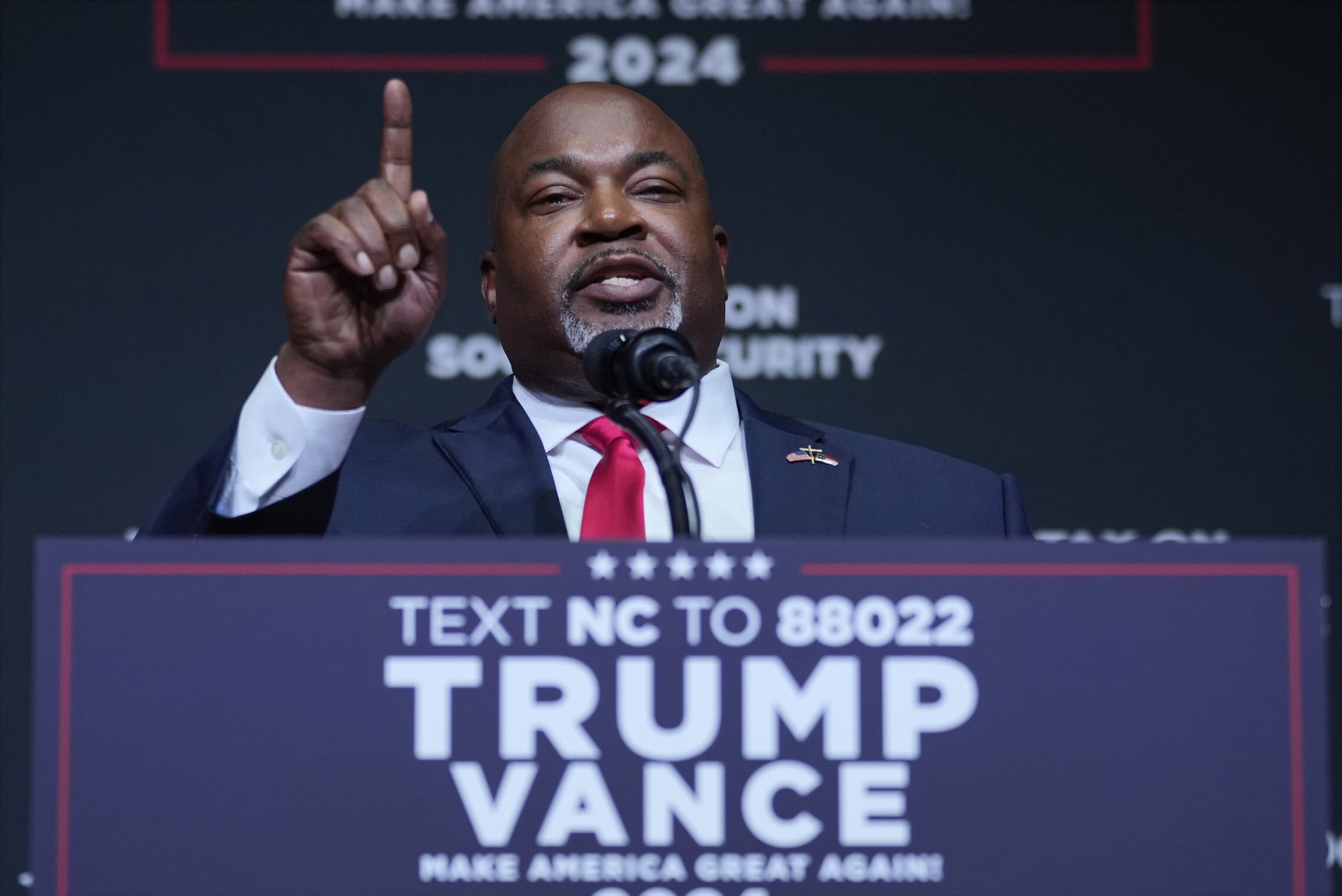 במצד הרפובליקאי ניצב סגן המושל מארק רובינסון. אכן, סגן המושל והמושל ממפלגות שונות, וזאת מכיוון שבצפון קרולינה משרות אלה נבחרות בנפרד.