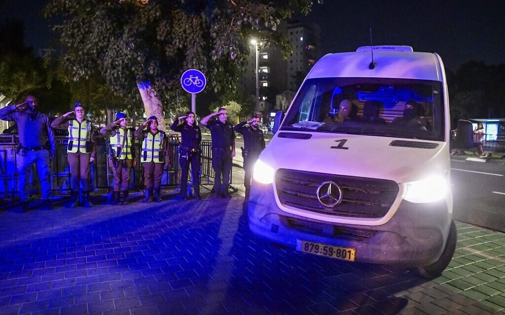 כלי הרכב המוביל שרידי חללים שחמאס מסר, מגיע למרכז לרפואה משפטית בתל אביב, 2 בנובמבר 2025
