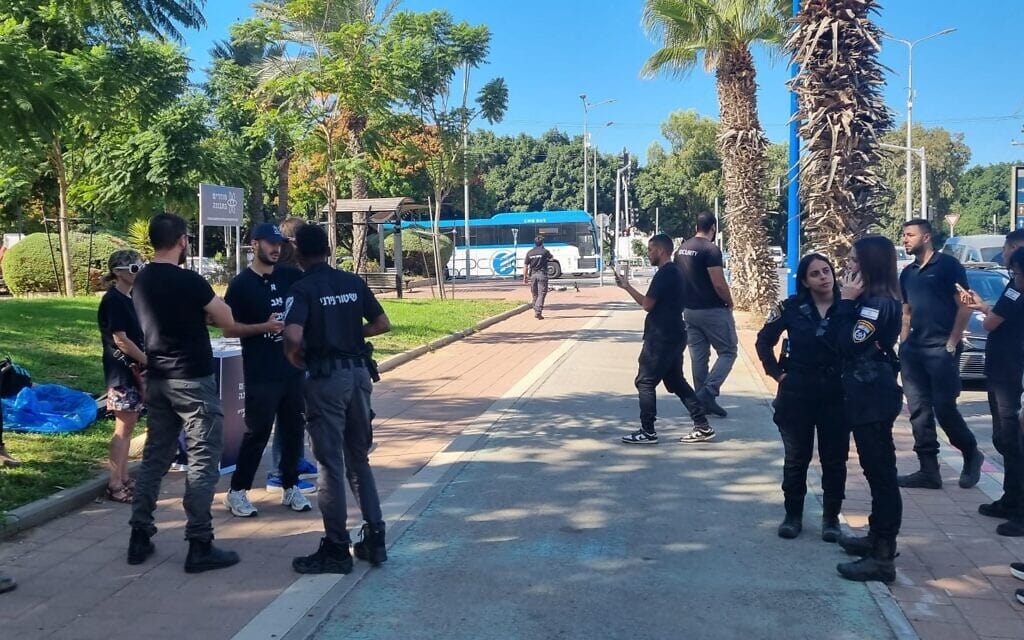 פקחי משטרה בחיפוי משטרתי מפרקים דוכן של "חוזרים בתבונה" הבוקר באשדוד (וידאו: תני גולדשטיין)
